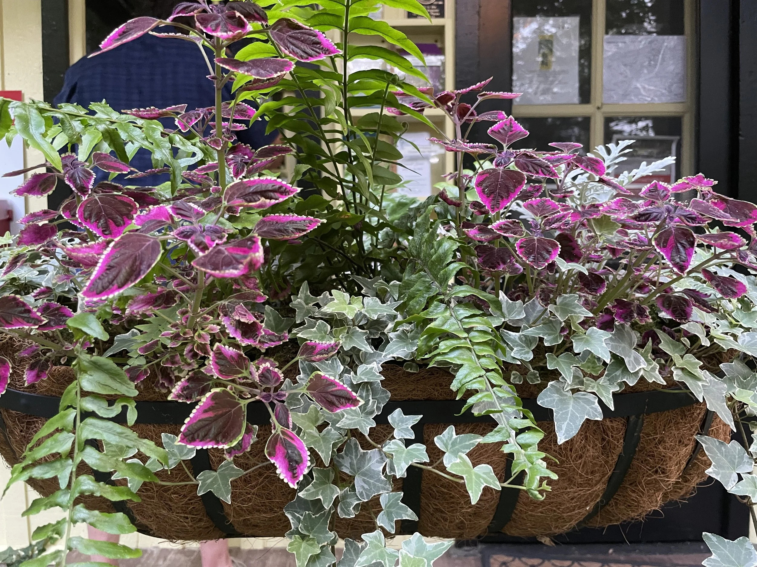 We had a wonderful time and the time outdoors did wonders for my creative spirit. While we were in Mt. Gretna, I snapped a few pictures of some woodland greenery in decorative hanging baskets to inspire my work.