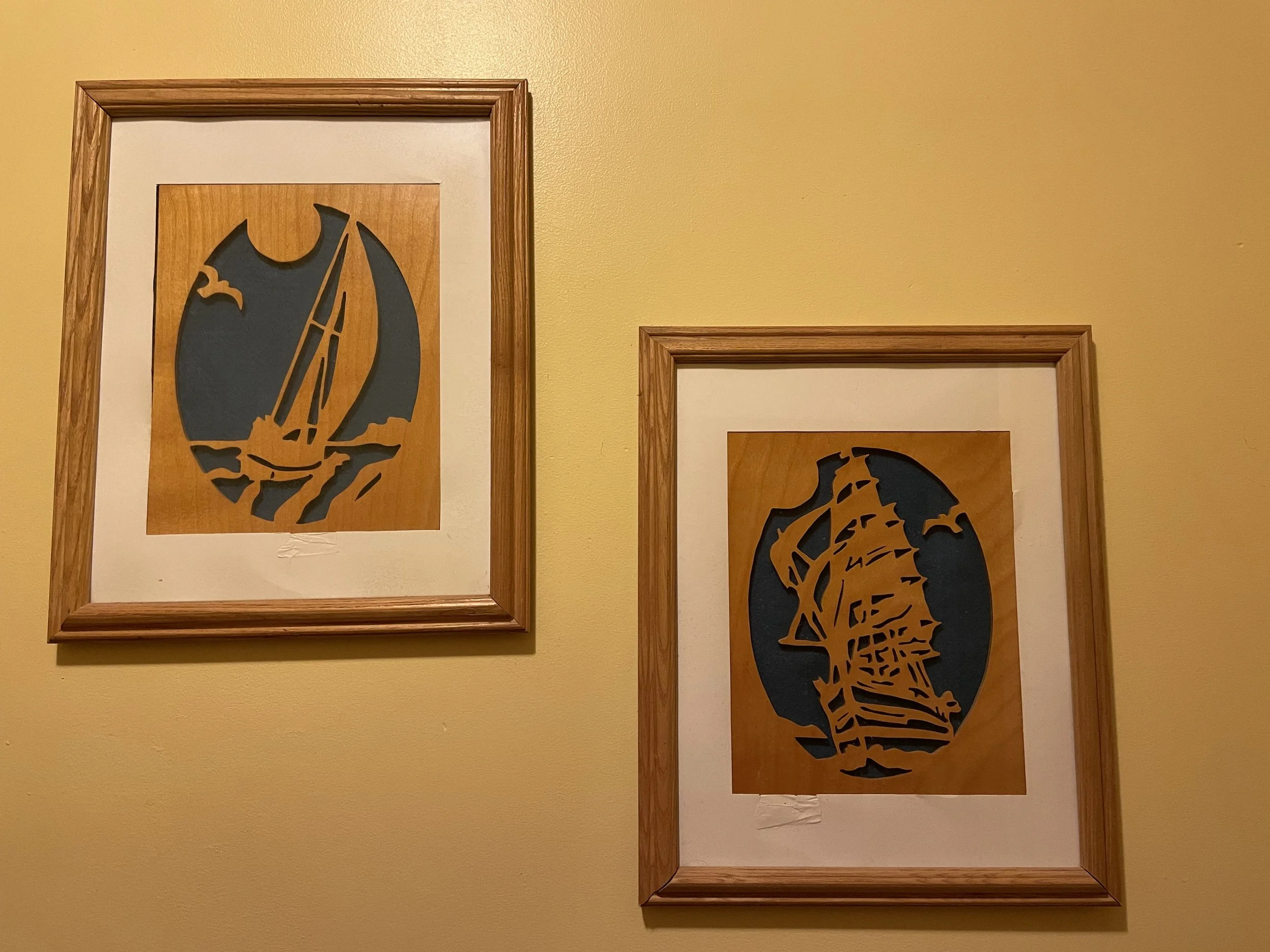 I got started on Rob's father's scrollsaw that he had in his garage. Soon I was buying scrollsaw patterns or finding them in magazines. It took me awhile to get the hang of it and there was some frustration along the way, but I was motivated to learn. Within a few months, I upgraded to a new scrollsaw of my own. We setup the saw in the basement and I spent many weekend afternoons cutting away intricate pieces of wood to make patterns. Some of them still grace our walls.